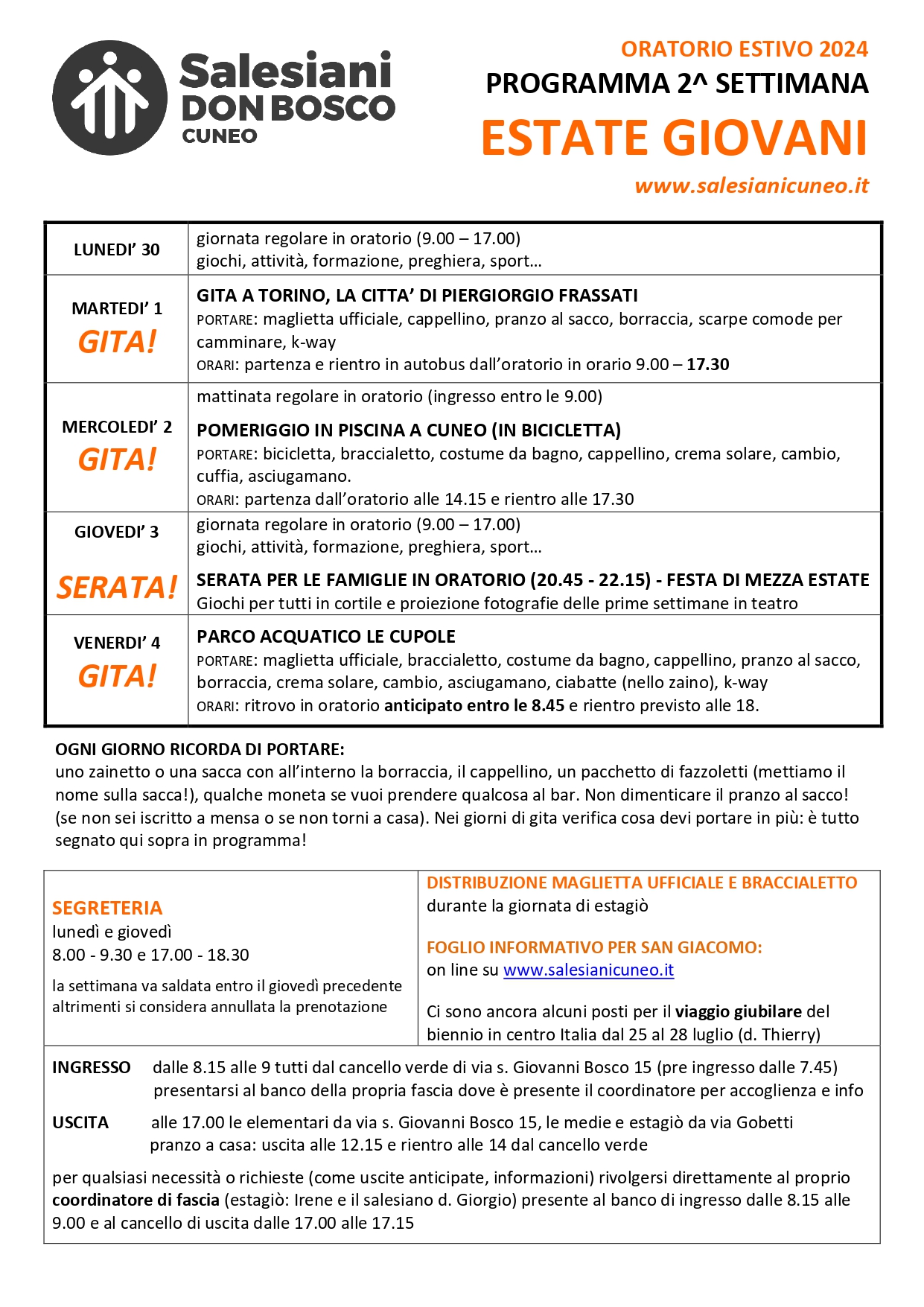 Si riporta di seguito il programma della seconda settimana di Estagiò 2025.
