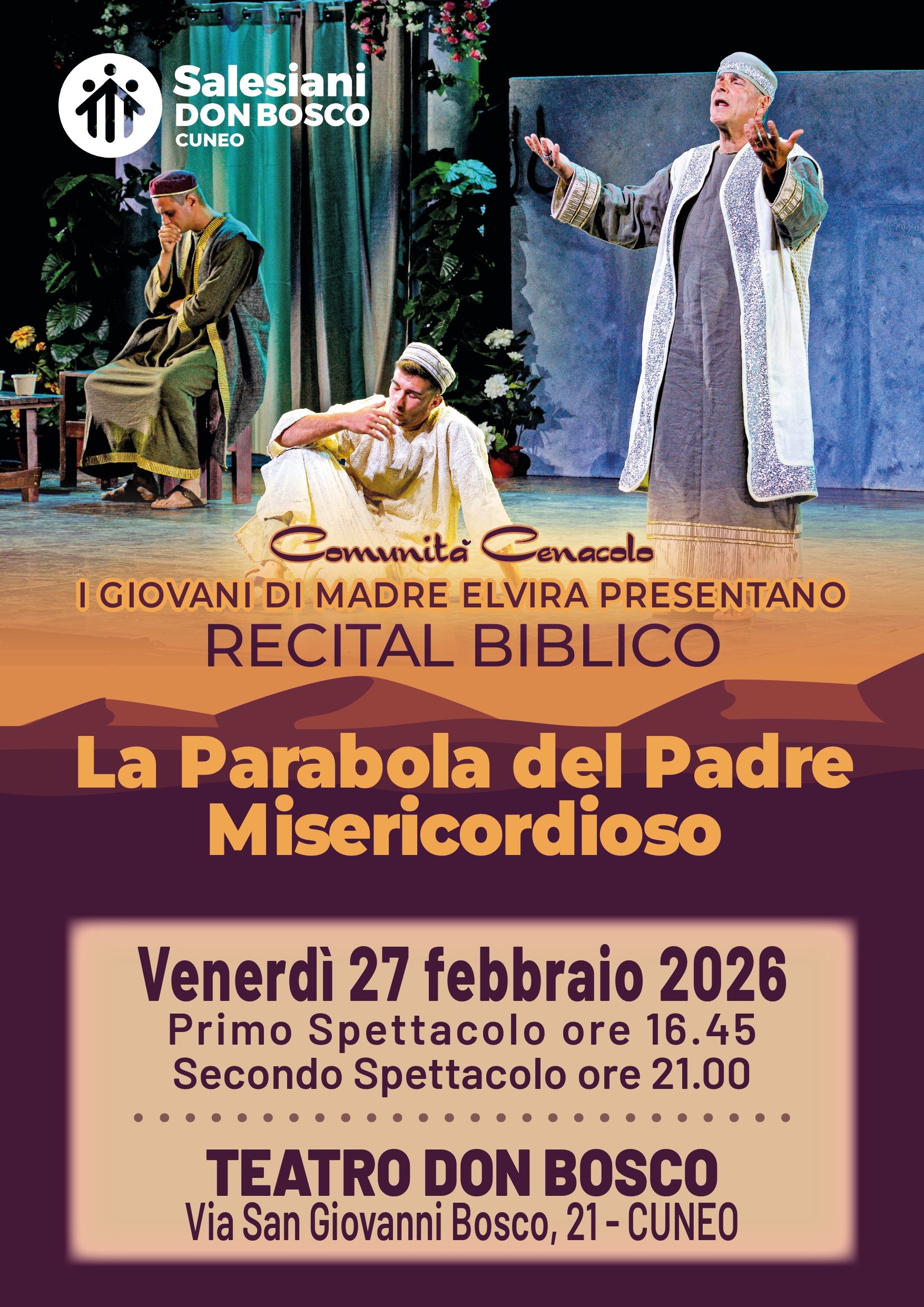 La storia del figlio prodigo con l’attualizzazione delle testimonianze dirette di questi giovani di oggi in cammino dalle tenebre alla luce. Nel quadro del percorso quaresimale 2026 la comunità salesiana offre a tutta la cittadinanza questa bella opportunità di riflessione, spettacolo ed evangelizzazione.